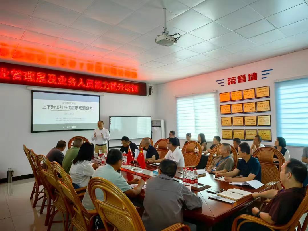 為了提升業務人員在復雜市場環境下的談判技巧和市場洞察力,以更好地服務客戶,應對各種“困難場景”談判。公司于7月19日,組織了一場題為“上下游談判與供應市場洞察力”的談判技能培訓,參加培訓學習人員為公司全體高管及采購、銷售業務人員,邀請業內商業談判、采購與供應管理實戰專家湯曉華授課。