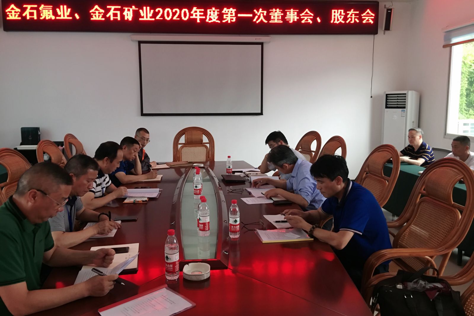 2020年6月8日下午1:30,在綜合樓三樓會議室召開公司2020年第一次董事會、股東會,公司全體董事及各股東出席會議。會議協商表決了金石氟業、金石礦業公司各項重大生產經營事項。