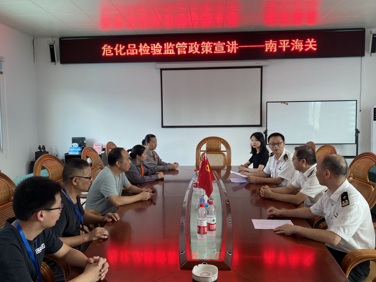 2021年07月20日上午10:00左右,南平海關副關長陳俊穎、南平海關查驗科一科領導黃云好、林鼎杰一行蒞臨我司做危化品檢驗監管政策宣講、危化品業務交流及管理體系認證審核。