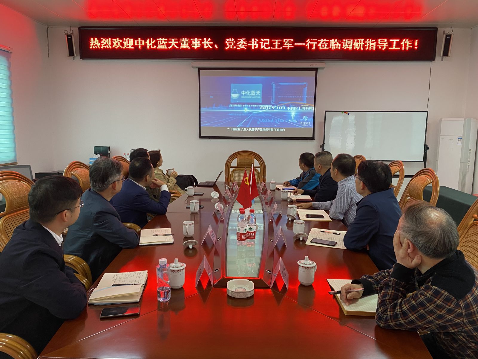 2021年11月3日,公司股東中化藍天董事長兼黨委書記王軍、副總經理吳康慧等一行5人蒞臨我司調研指導工作。金石氟業董事長總經理陳建華,金石礦業總經理李仁輝及中化藍天派駐領導洪惠能、程志軍等陪同參加。