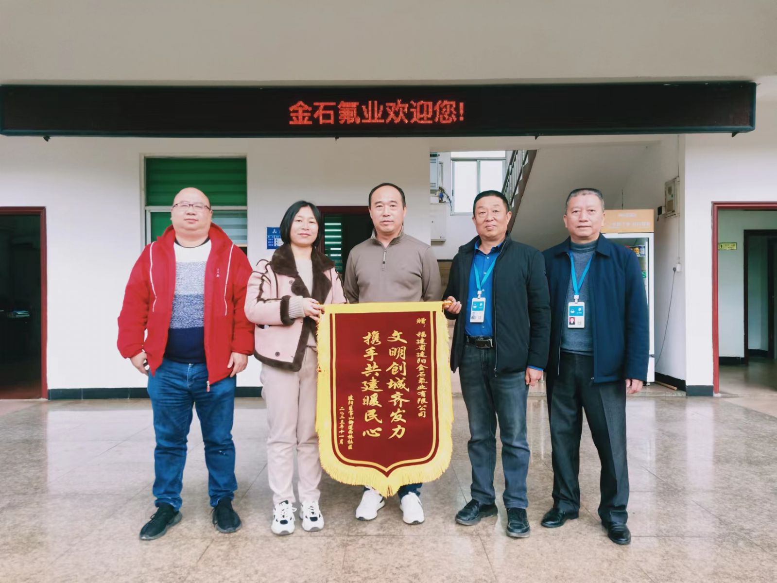 12月5日上午,建陽區寶山街道西橋社區居委會工作人員給公司送來“文明創城齊發力,攜手共建暖民心”錦旗,表達誠摯的謝意,居委會工作人員表示,社區一定會將愛心資金用到社區治理的實處,創建轄區優美環境,助推全區創建文明城市工作。
